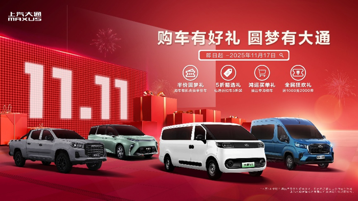 当“双11”从电商狂欢演变为全民对美好生活的向往和奔赴,上汽大通MAXUS即将于10月28日正式启动“购车有好礼,圆梦有大通”专项宠粉行动,将限量五折等重磅福利与明星产品深度绑定,无论你是想为家庭添置舒适座驾、为创业添置得力工具,还是单纯期待一份“清空购物车”的鸿运,都可以在这个双11,跟上汽大通来一场“圆梦之约...