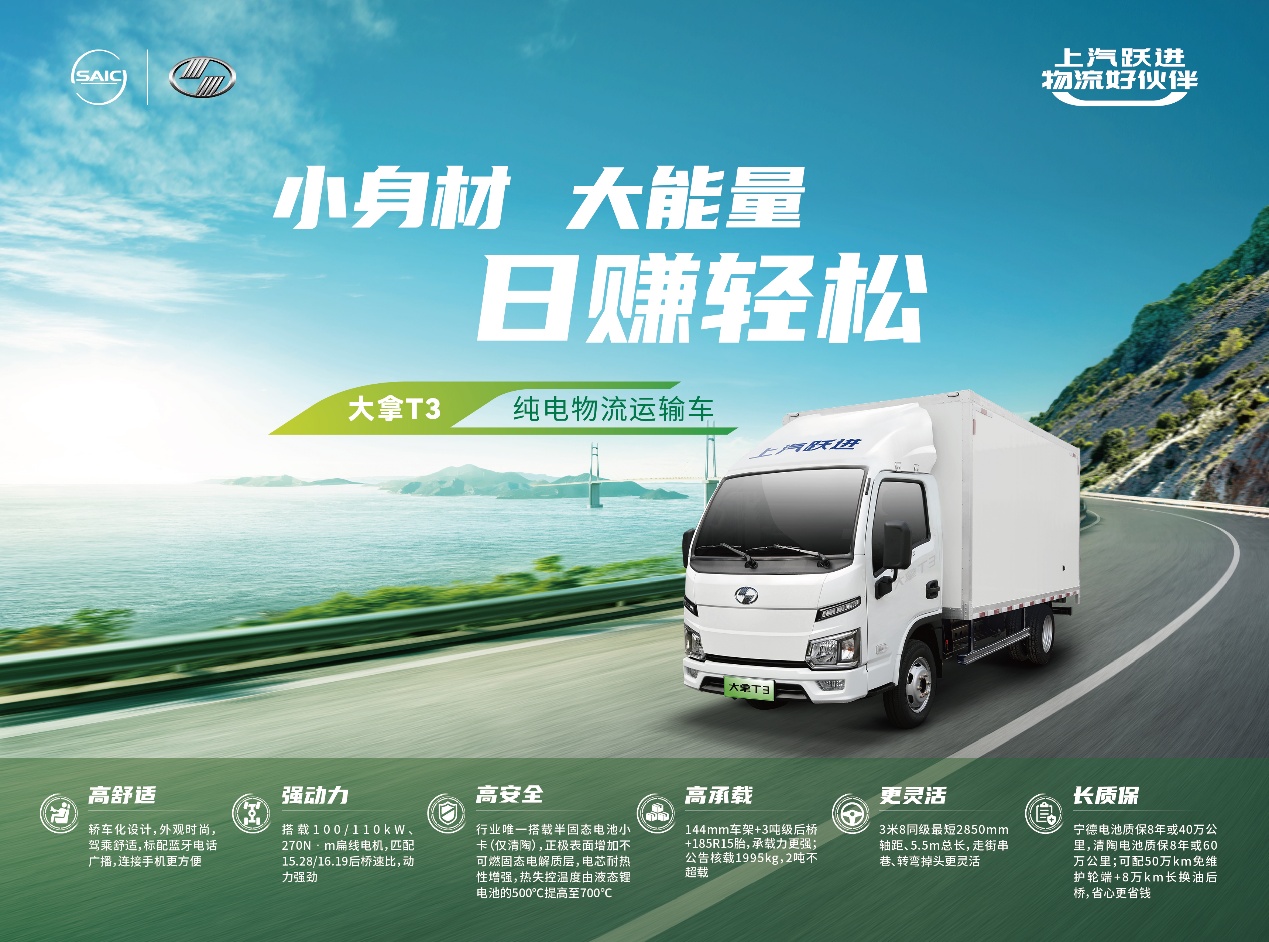 近日,在“2025第一商用车网年度评选”颁奖典礼上,上汽跃进大拿T3以其出色的市场表现、创新的技术应用和精准的产品定位,荣获“2025年度第一畅销纯电小卡”大奖。