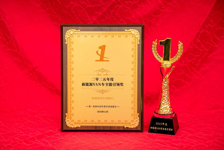 近日,在北京举行的“2025第一商用车网年度评选”颁奖典礼上,奇瑞商用车海豚K5凭借在今年在轻客市场的杰出表现,荣获“2025年度新能源VAN车全能引领奖”殊荣。