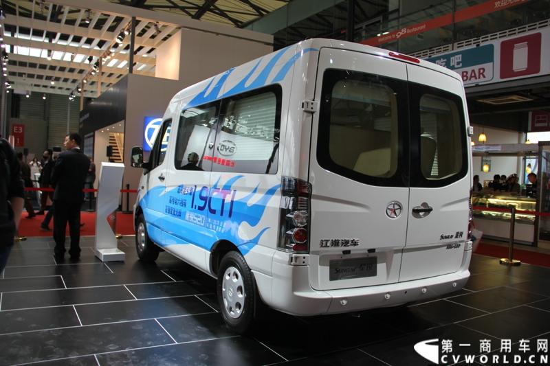 2013年上海车展上,江淮星锐产品和服务“双驱动”的阵势一目了然。一方面,4系商务车领衔新标准校车、重症监护车、专业旅居车等全系列行业车辆解决方案集结登场;图为江淮星锐4系商务车。