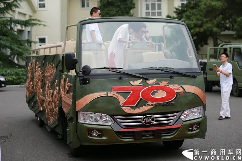 为进一步揭秘受阅客车的受阅历程和幕后故事,2015年9月9日,中国人民抗日战争暨世界反法西斯战争胜利70周年受阅客车安凯·宝斯通客户交流会在北京钓鱼台国宾馆盛大举办。图为:经过检阅的安凯宝斯通客车
