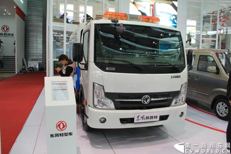 本次车展东风汽车股份除了带来东风凯普特改装的东风鲜速达车型外,还带来了一辆东风凯普特电动道路清扫车和一辆东风凯普特轻卡纯电动底盘。图为东风凯普特纯电动扫路车。