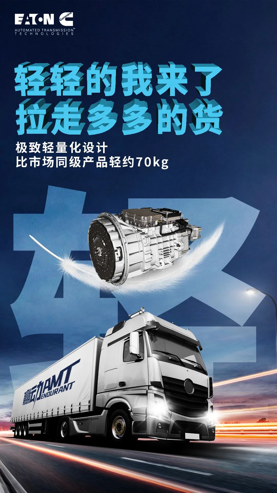 省在轻盈,赢在高效。赢动AMT变速箱让你装的更多,自然赚的更多。轻松应对油价高涨,高效收益有保障!