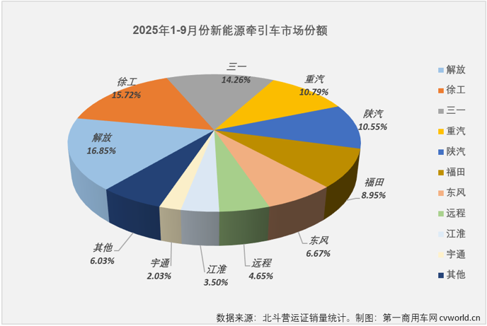 营运证观察:9月新能源牵引车销1.8万辆暴涨2.8倍!解放/徐工月榜争冠,TOP5累销破万