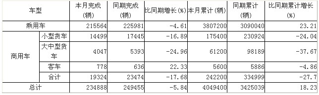 12月份,德国汽车注册量为234888辆,比去年同期下降了5.84%。商用车注册量为19324辆,比去年同期下降了17.68%;其中:小型货车注册量为14499辆,比去年同期下降了16.89%;大中型货车注册量为4047辆,比去年同期下降了24.96%;客车注册量为778辆,比去年同期增长了22.33%。