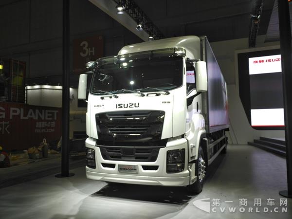 本次上海车展,庆铃商用车已经摆上了三辆“巨咖”产品,但工作人员还未把车型牌展示出来。