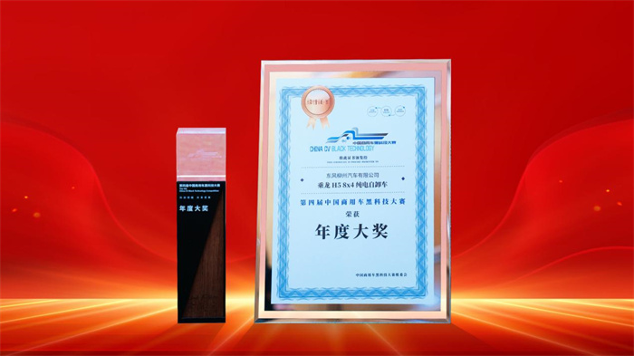01月8日,东风柳州汽车有限公司旗下“乘龙H5 8×4纯电自卸节能技术”项目,在第四届中国商用车黑科技大赛中荣获本届最高荣誉——年度大奖。这一奖项的获得,为东风柳汽2026年的发展迎来了开门红,也标志着乘龙在新能源重卡领域的技术实力获得行业高度认可。