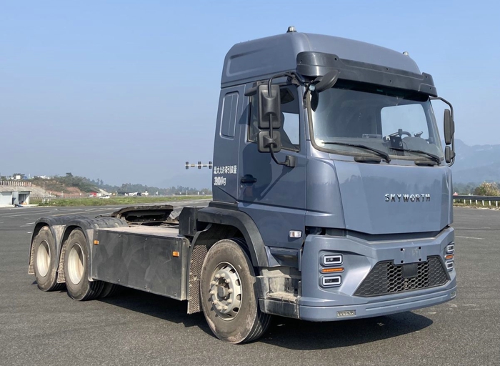 在工信部第402批公示上,开沃集团旗下的创维汽车申报了一款新外观纯电动半挂牵引车。该车外形尺寸长7435mm,宽2450mm或2550mm,高度为2770mm或3290mm。轴距为3800+1350mm,钢板弹簧片数(前/后)为1/2,2/2,2/3,3/4。